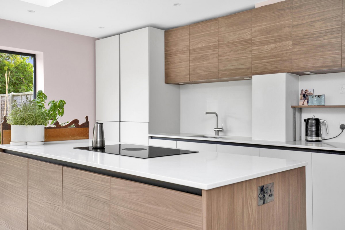 The house itself has been thoughtfully extended and reconfigured to suit modern family life. The ground floor is where the space really opens up: a full-width rear extension has transformed the original footprint into a bright, flexible open-plan kitchen, dining and living area. Skylights overhead flood the space with natural light during the day, and in the warmer months, wide bi-fold doors open straight out to the garden, effectively doubling the living area and making it ideal for entertaining or simply enjoying an indoor-outdoor flow.
