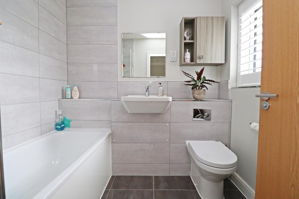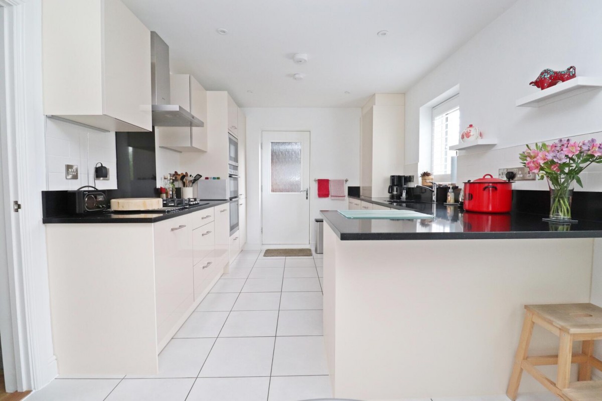To the front, a bright dual-aspect lounge provides a relaxing retreat, with French doors opening out to the garden - a perfect extension of your living space on warmer days. To the rear, the open-plan kitchen and dining area is the heart of the home. With sleek quartz worktops, integrated appliances, and a breakfast bar for casual dining, it's designed for both cooking and entertaining.