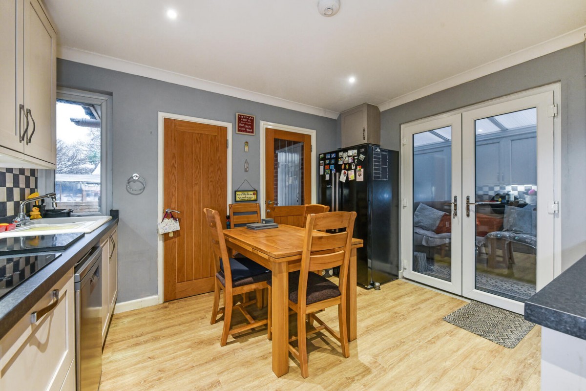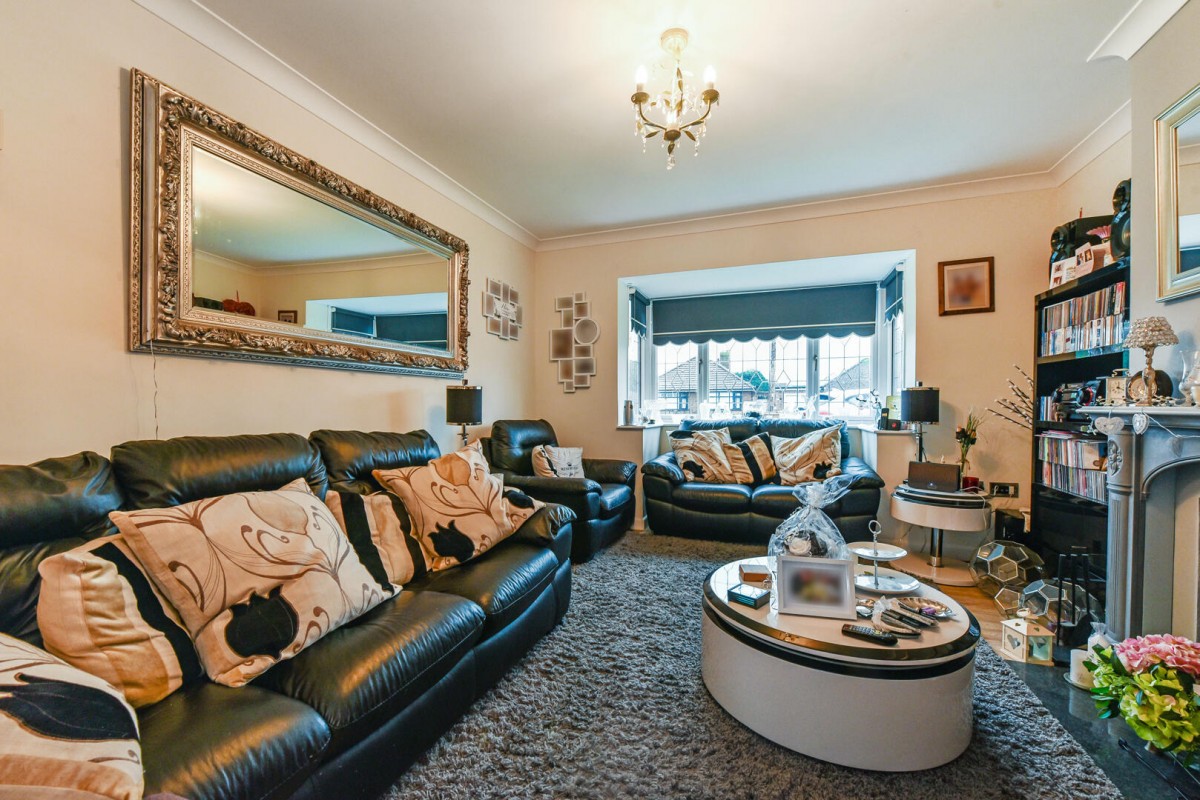 Inside, a welcoming hallway leads into a bright and spacious living room filled with natural light, centred around a cosy feature fireplace — the perfect place to unwind after a day by the coast. The modern kitchen and dining area are well designed for both everyday living and entertaining, with generous storage, integrated appliances, and a convenient adjoining utility room. A snug conservatory to the side provides a peaceful spot to enjoy morning coffee or an evening read while overlooking the garden.