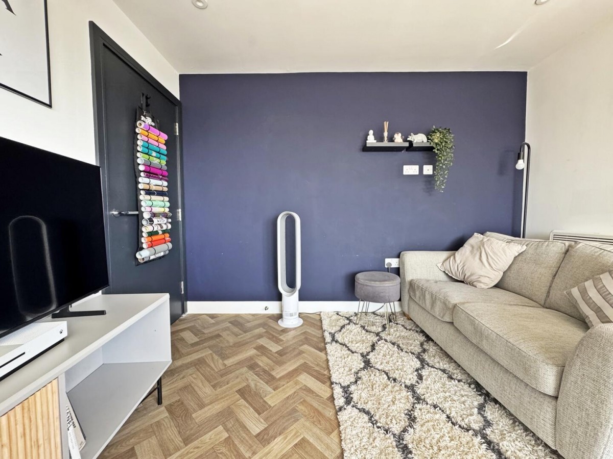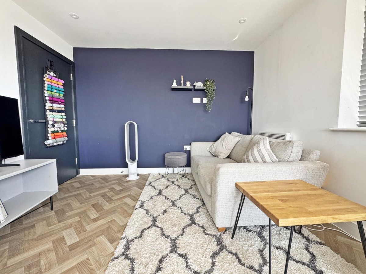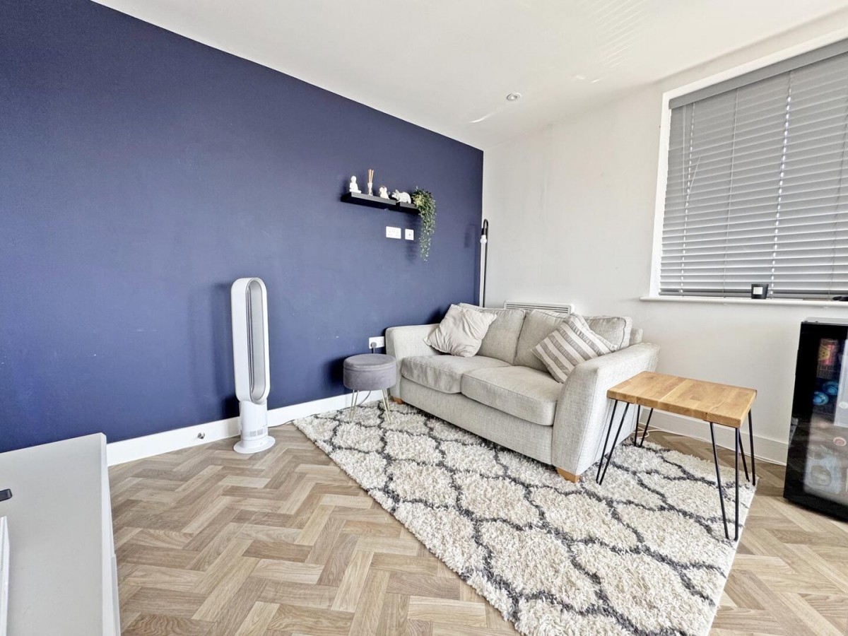 The standout feature is the open-plan kitchen, dining and living space — a bright, sociable room that comfortably accommodates both seating and dining areas. Dual aspect glazing and sliding doors allow plenty of natural light to pour in, while also providing direct access onto a private balcony, offering a pleasant spot to sit out and unwind.