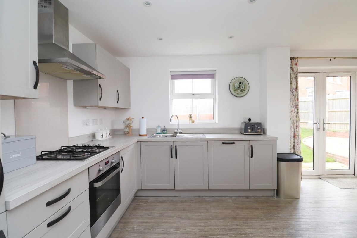 Upstairs, three comfortable bedrooms offer flexibility for growing families, visiting guests or home working. The principal bedroom enjoys fitted wardrobes and a smart en-suite shower room, creating a peaceful retreat at the end of the day. A modern family bathroom serves the remaining bedrooms, all presented in keeping with the home’s fresh, contemporary feel.